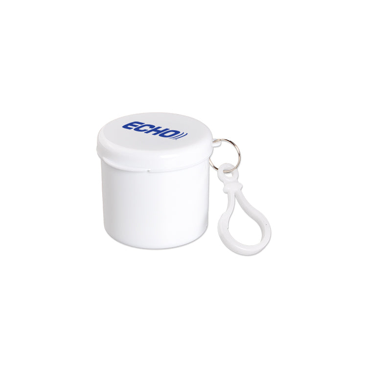 Be prepared for the weather with our rain poncho keychain. Poncho folds to fit in 2" x 2" case with plastic keychain clip. Add your logo to the case and have your logo stand out whenever the weather strikes! Poncho fits most adults. Available in blue and white. One location imprint only.