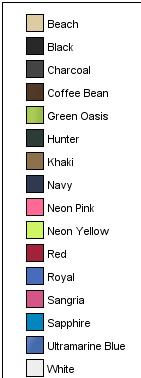 Fabric: 100% cotton twill; 80/20 poly/cotton (Neons)