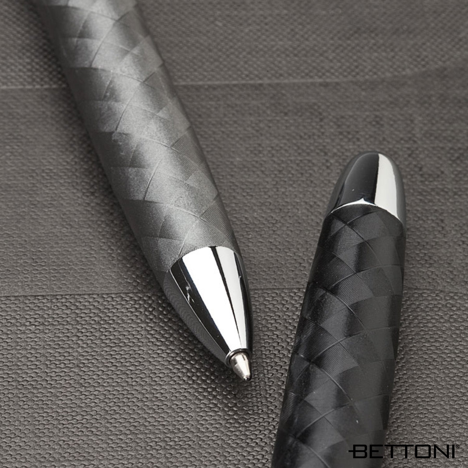 Brass twist-action ballpoint features a woven barrel design with chrome cap, clip and trim. See details