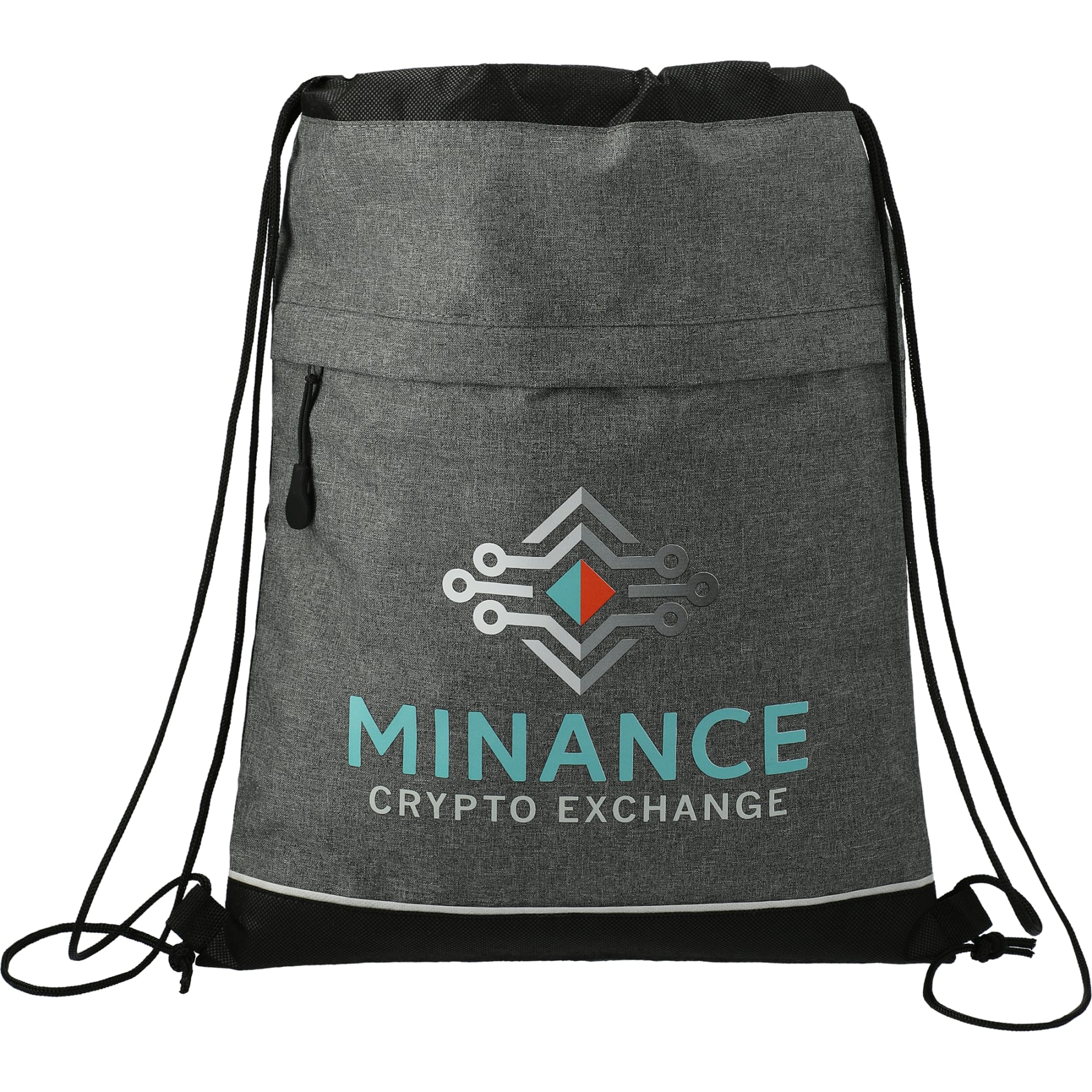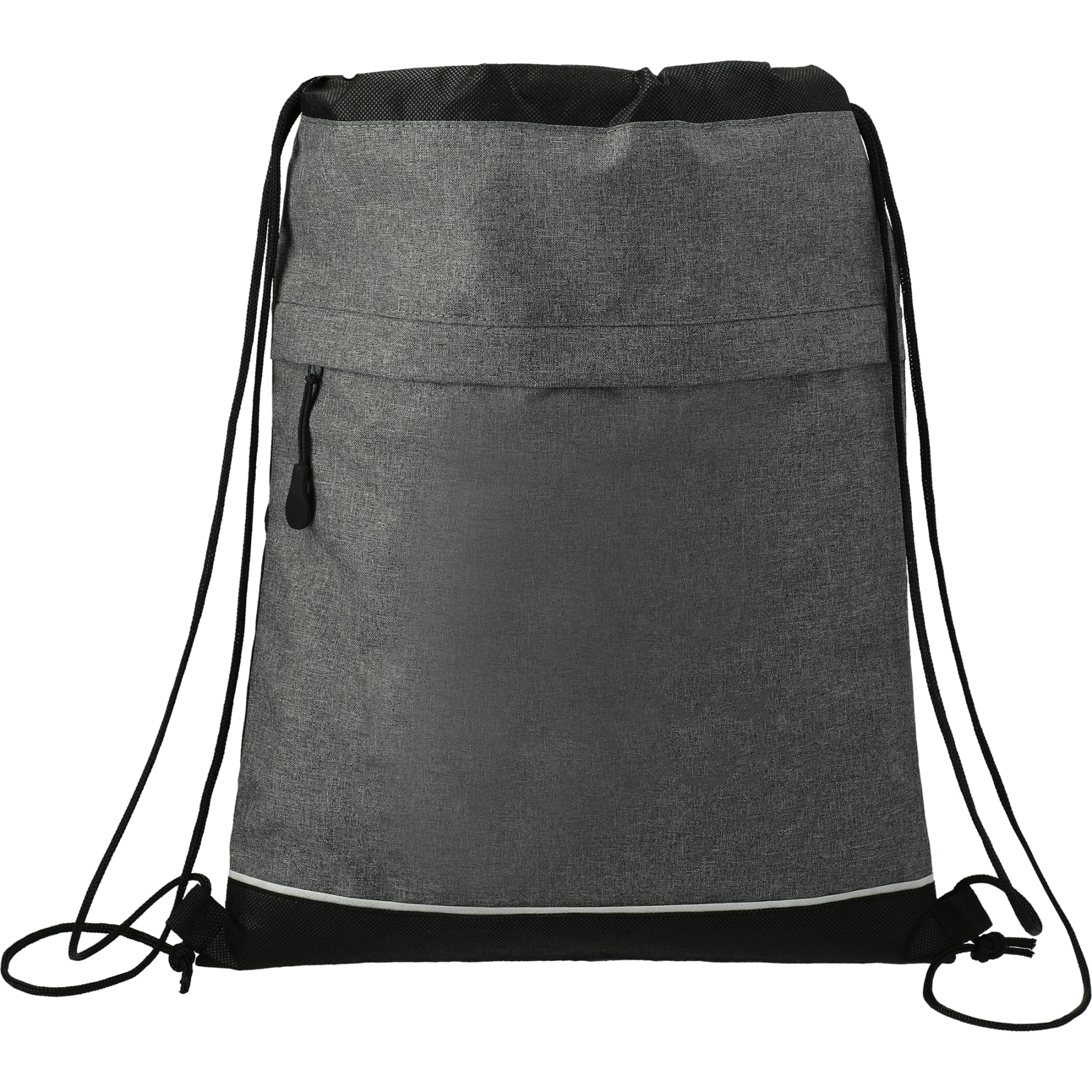 The Quarry Drawstring bag features a zippered front pocket and a main compartment with cinch closure.