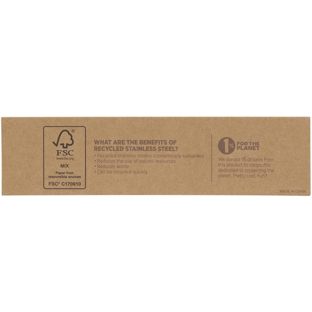 The Recycled Stainless Steel Ballpoint Pen features a recycled stainless steel barrel with shiny chrome accents. 1.0mm tip and smooth black ink with 800m of writing length. Click mechanism. Through a partnership with 1% For The Planet, one percent of sales of all EcoSmart® products are donated to environmental nonprofits.