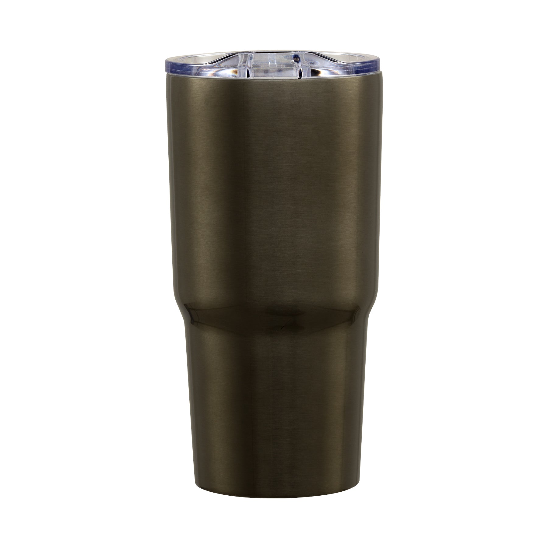 Our Reva 18/8 double wall stainless steel tumbler with copper lining is vacuum sealed and keeps your coffee hot for 10 hours and your ice water cold for 18 hours. This tumbler has a clear sliding closure lid, comes in several metallic finishes and fits in most car cup holders. FDA compliant and BPA free.