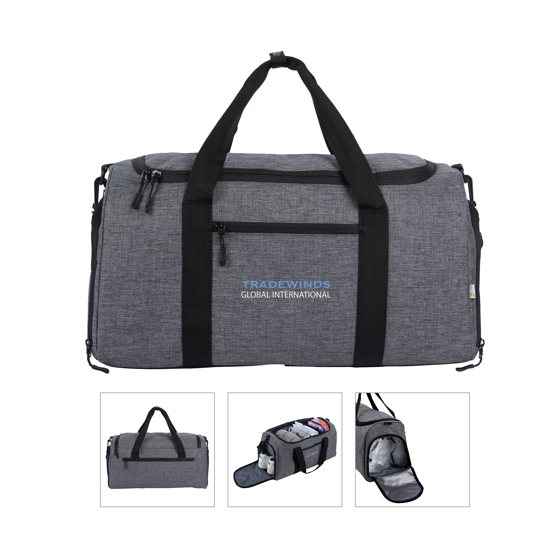 The Rochester Travel Duffel is the perfect size for a weekend getaway or as a carry-on to hold an extra change clothes for domestic or international travel. The Rochester features a front and back zipper compartment, a zippered side shoe pocket, a zippered side PVC-lined pocket for damp items, bottom stiffener, an adjustable and removable shoulder strap and an interior zippered pocket. This duffel can also be used for sports outings, the gym, day trips, car rides, yoga and more.