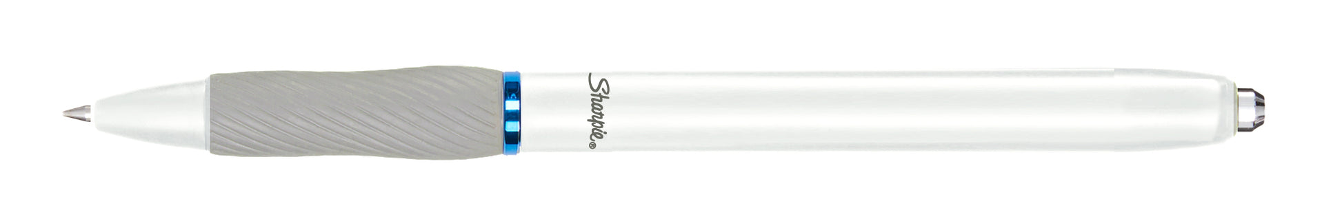 Experience a high-performance gel pen with the Sharpie S-Gel White Barrel. With no smear, no bleed technology, this Sharpie pen delivers an exceptional writing experience. The gel ink pen features intensely bold colors for vivid writing, while the contoured rubber grip provides you a comfortable writing experience during any writing task. It’s sleek design and matte finish make it a pen you’ll be hesitant to loan out. Available in two options: Silver Accent/Black Ink or Blue Accent/Blue Ink.