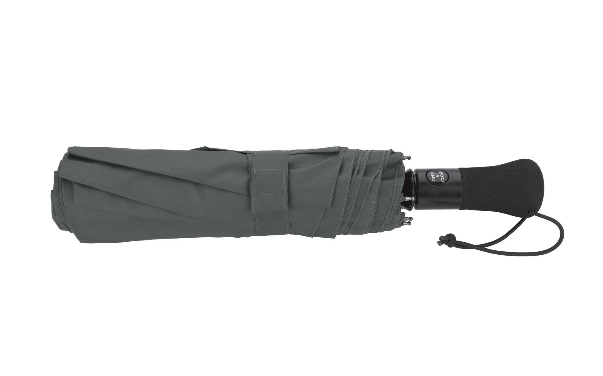 No matter the weather, Shed Rain has you covered. With one push of a button, this compact umbrella opens to a surprising 54" arc, large enough to keep two people sheltered from the rain. Its vented PFAS-free canopy is engineered to resist windy conditions, minimizing worries about it inverting even on the stormiest days. The fiberglass reinforced polymer (FRP) frame/rib construction adds to its durability. Finishing design features on this go-to rain gear include a black electrostatic steel shaft, an EVA cushion grip handle, and a sleeve with a snap-on swivel hook. Shed Rain covers this product with a lifetime warranty (excluding imprint).