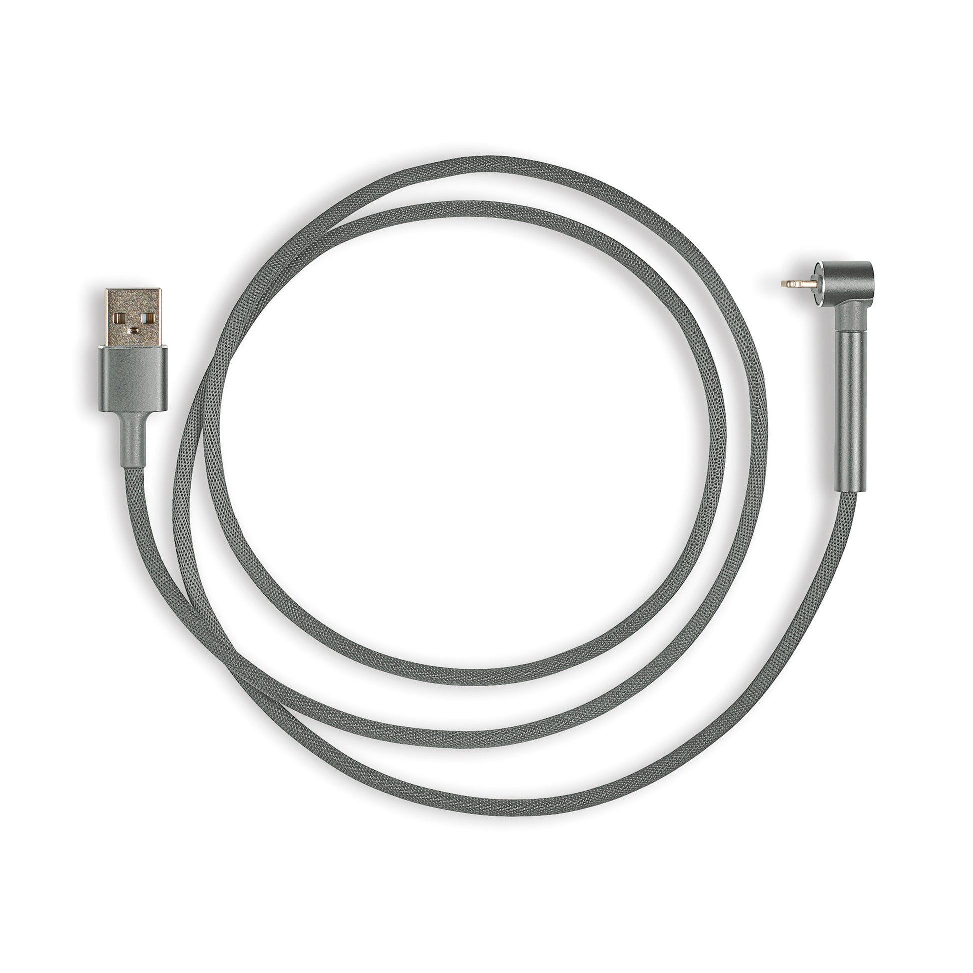 Fast charge and sync your iOS device with this heavy gauge woven fabric charging cable. Right angle charging tip allows the cable to double as a stand for landscape viewing while charging your device. Safe high-speed charging up to 5VDC - 2.4A 12W max, and works best for tablets and iOS smart phones. Extra durable premium quality nylon braided woven fabric and further reinforced by shielded metal connector tips. Compatible with iPhone 5 - 11X and iPad.