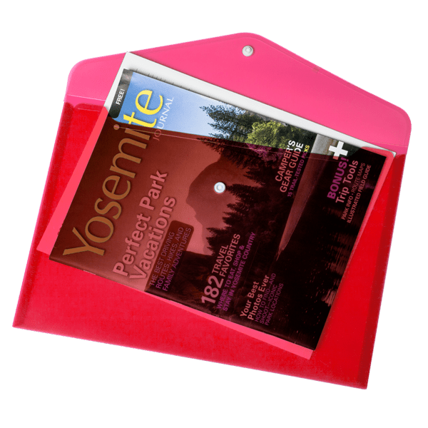 "Bold color translucent envelope-style document holder with snap-closure. Lightweight and ideal for travel or storage. One color imprint only."