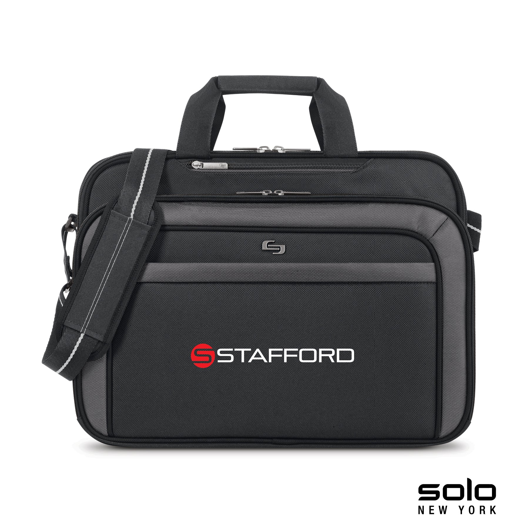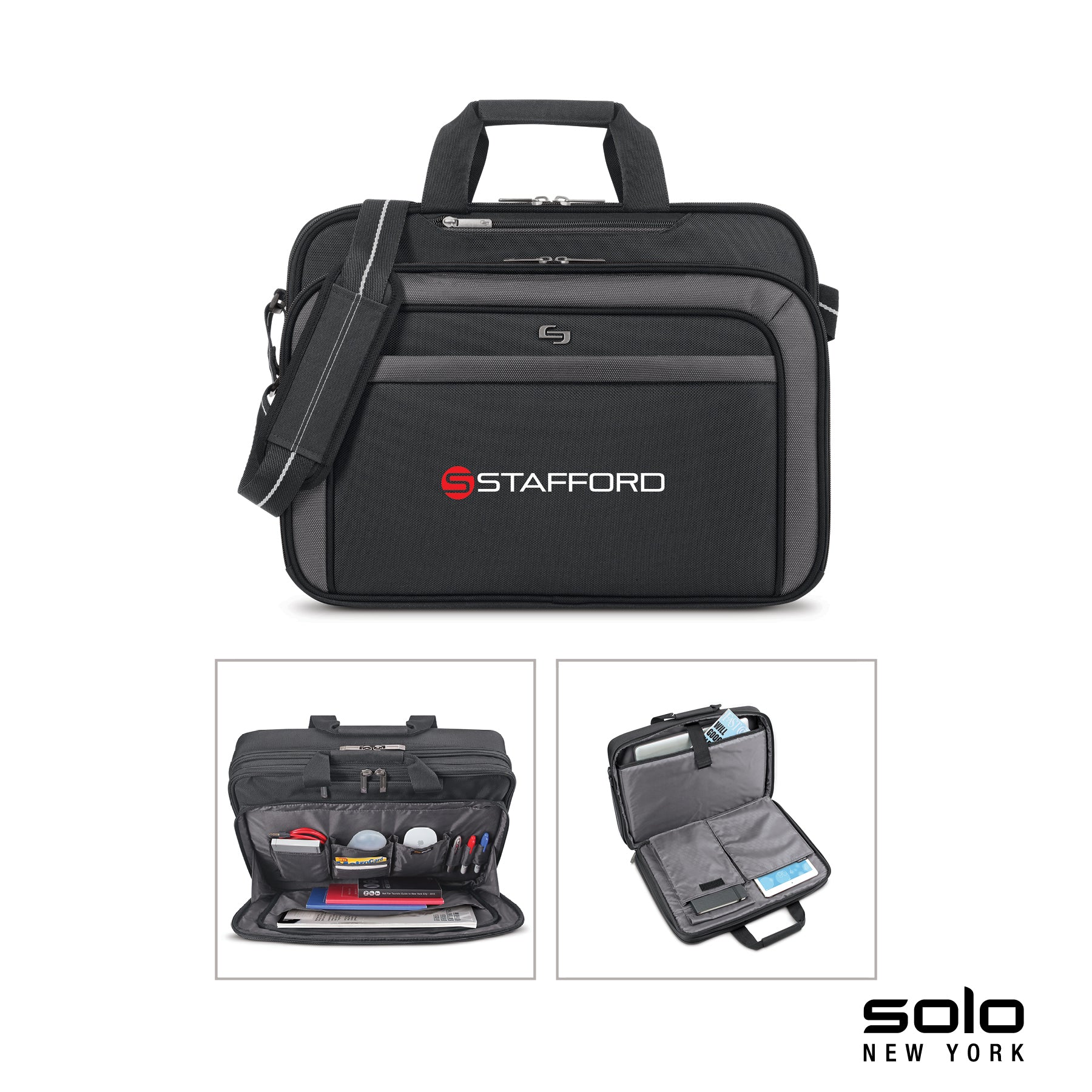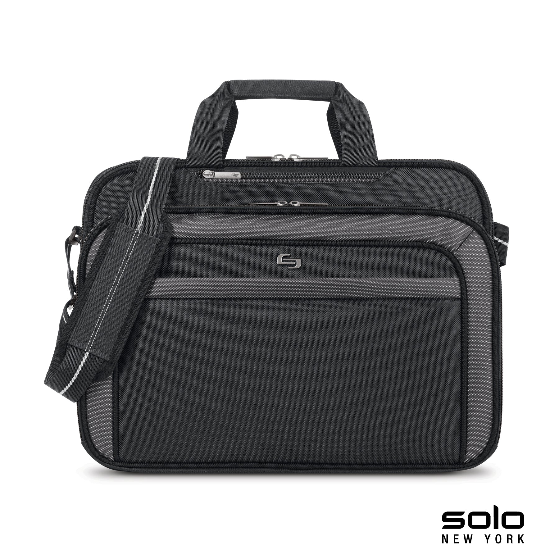 Solo New York Empire laptop briefcase's lay-flat clamshell design separates your computer from accessories to meet Travel-Sentry® checkpoint-friendly requirements, allowing quick x-ray scanning. The exterior is made from 1680D Ballistic Polyester and interior is fully lined. The padded main compartment holds laptops up to 17" and has interior pockets for standard and mini tablets. Second full size zippered divided compartment holds and organizes documents. Front zippered organizer pocket features a large interior pocket and accessory organizer pockets. Also includes a small zippered passport/wallet pocket and front zippered exterior compartment offers more storage. Also features carry handles, a 1 1/2" x 49" padded and adjustable shoulder strap and hook and loop trolley strap.