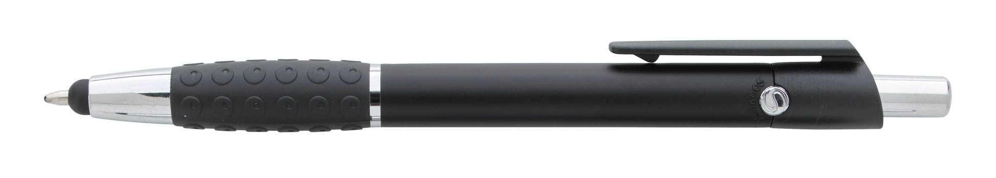 The Anthem Stylus Pen features a metallic-colored barrel, chrome-plated accents, and the Souvenir® logo molded into metal rivets. The capacitive click-through stylus makes it easy to flip between paper and screen.