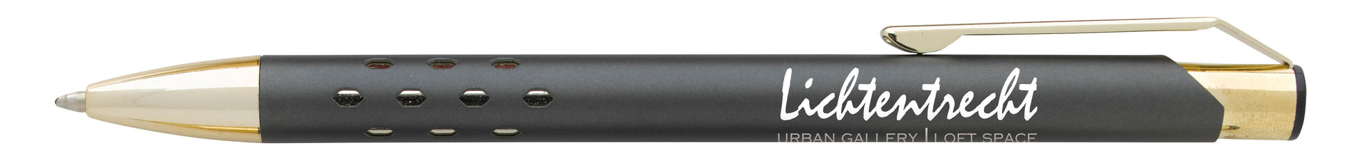 This high-style matte metallic writing instrument features elegant gold trim, a die-cut grip design, and InstaGlide® ... See details