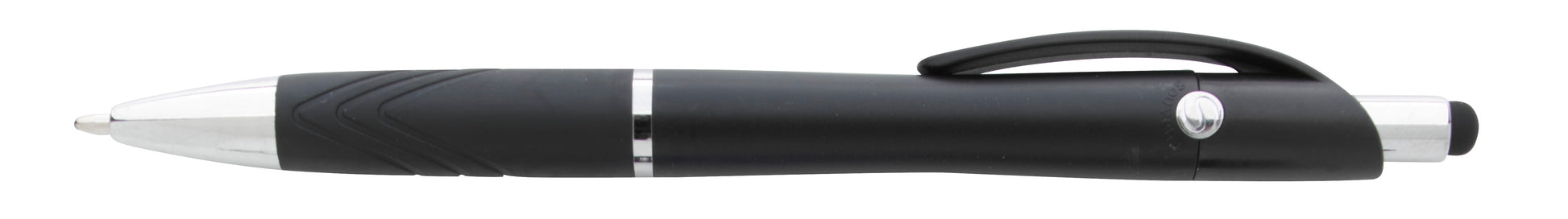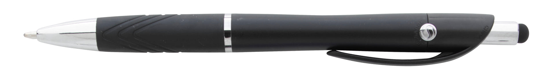The elegant Emblem Stylus pen features a contoured barrel with a comfortable rubber grip and chrome-plated accents. Flip the pen over to use the handy capacitive screen stylus on the plunger.