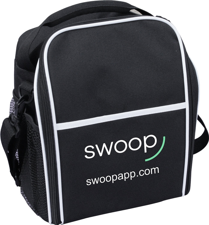 Pack a lunch that packs a punch! Put this against all other lunch coolers, and this one will stand its ground! This rugged full-sized lunch cooler adds function to form. Its full zip clam shell opening provides easy access to the insulated compartment. Contrast piping adds design and durability. 12 can capacity. 600D Poly.