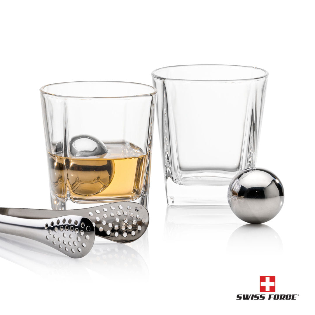 The Swiss Force® Stainless Steel Ice Balls and Tong are combined with two of our Arcadia On-the-Rocks glasses to make a sophisticated and classy gift set for any occasion. Packaged in a beautiful satin lined presentation gift box.