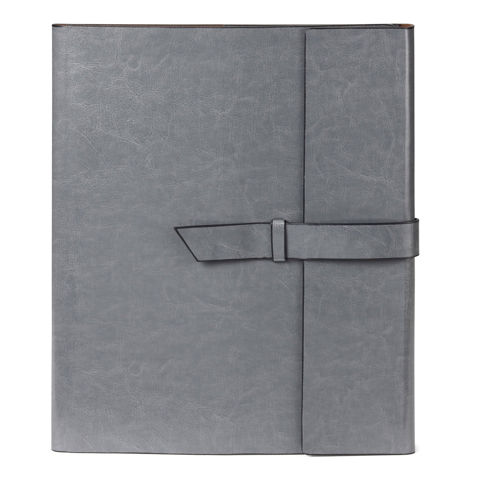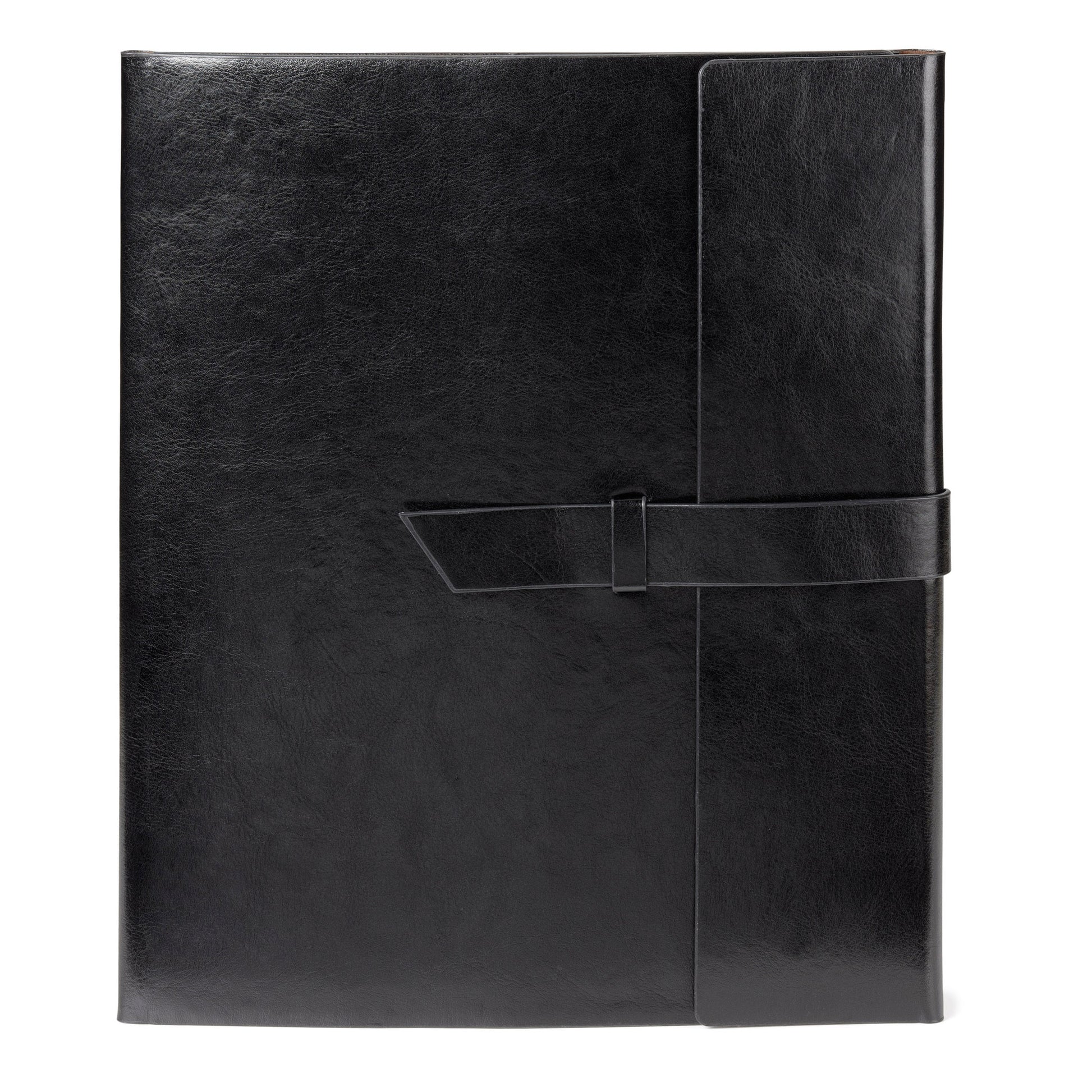 Vinyl portfolio with matching interior pen loop (pen not included), brown felt lining and a perfect bound 8 1/4" x 11" notebook containing 160 ivory lined pages (refillable)