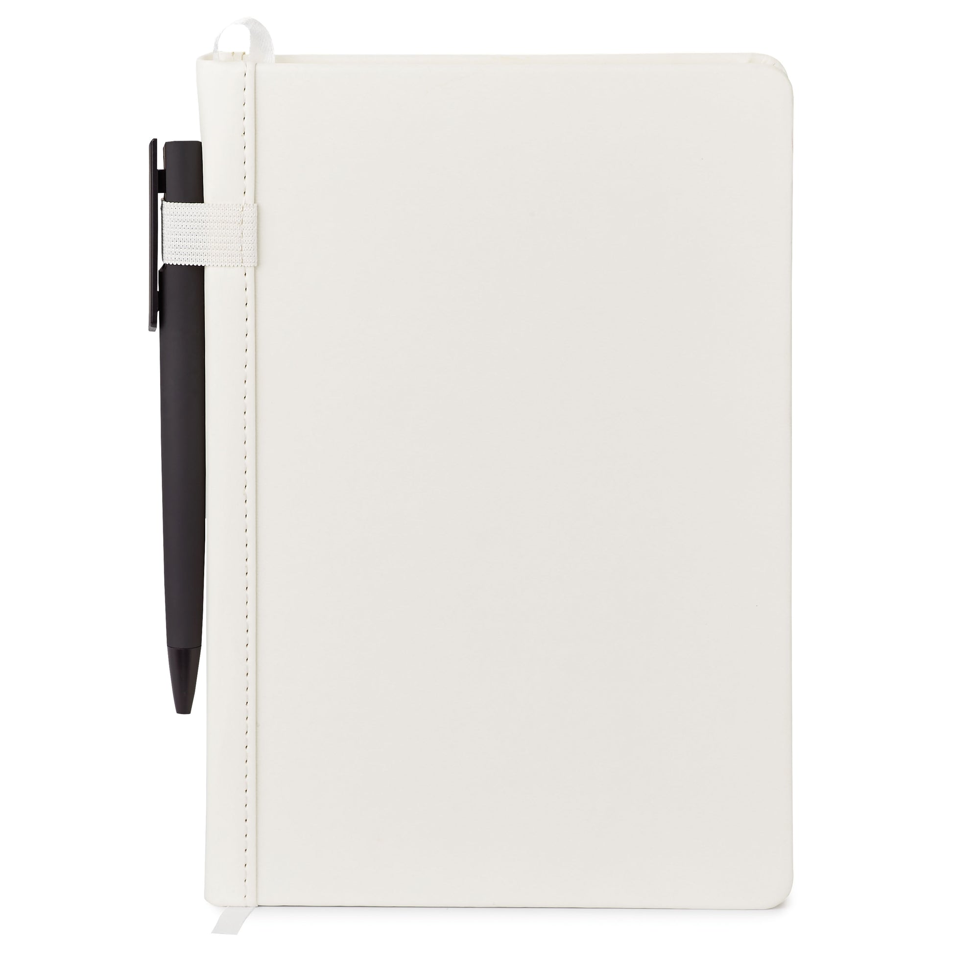 Combo includes st4360 vinyl journal with 192 ivory lined, perforated pages (non-refillable) and a matching g1254 donald clip-action ballpoint plastic pen. (journal inner page dimension is 5 7/16" x 8 1/8")