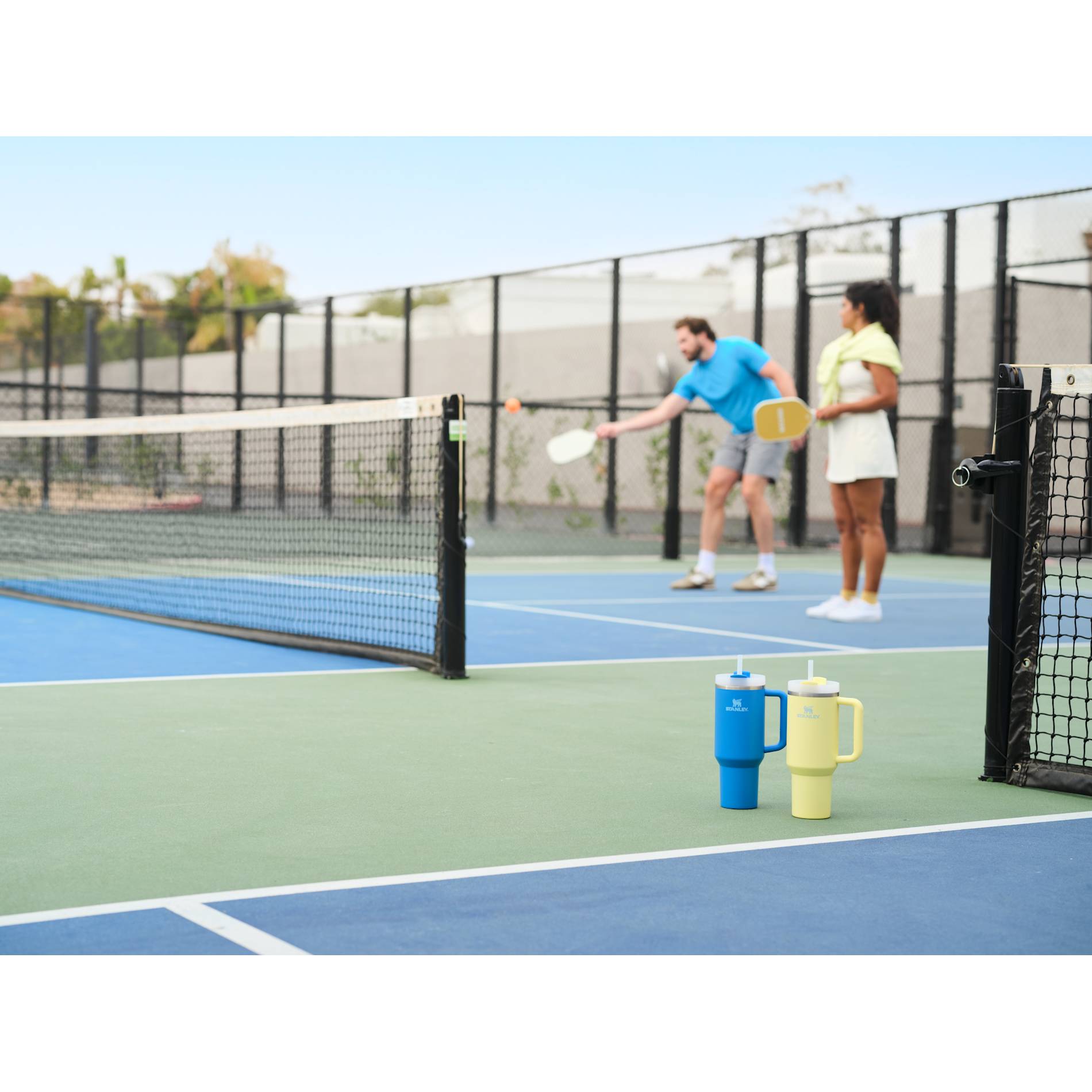 Constructed of recycled stainless steel for sustainable sipping, the 40 oz Quencher H2.0 offers maximum hydration with fewer refills. Commuting, studio workouts, day trips or your front porch—you’ll want this tumbler by your side. Thanks to Stanley’s vacuum insulation, your water will stay ice-cold, hour after hour. The advanced FlowState™ lid features a rotating cover with three positions: a straw opening designed to resist splashes while holding the reusable straw in place, a drink opening, and a full-cover top. The ergonomic handle includes comfort-grip inserts for easy carrying, and the narrow base fits just about any car cup holder. Hand Wash Only.