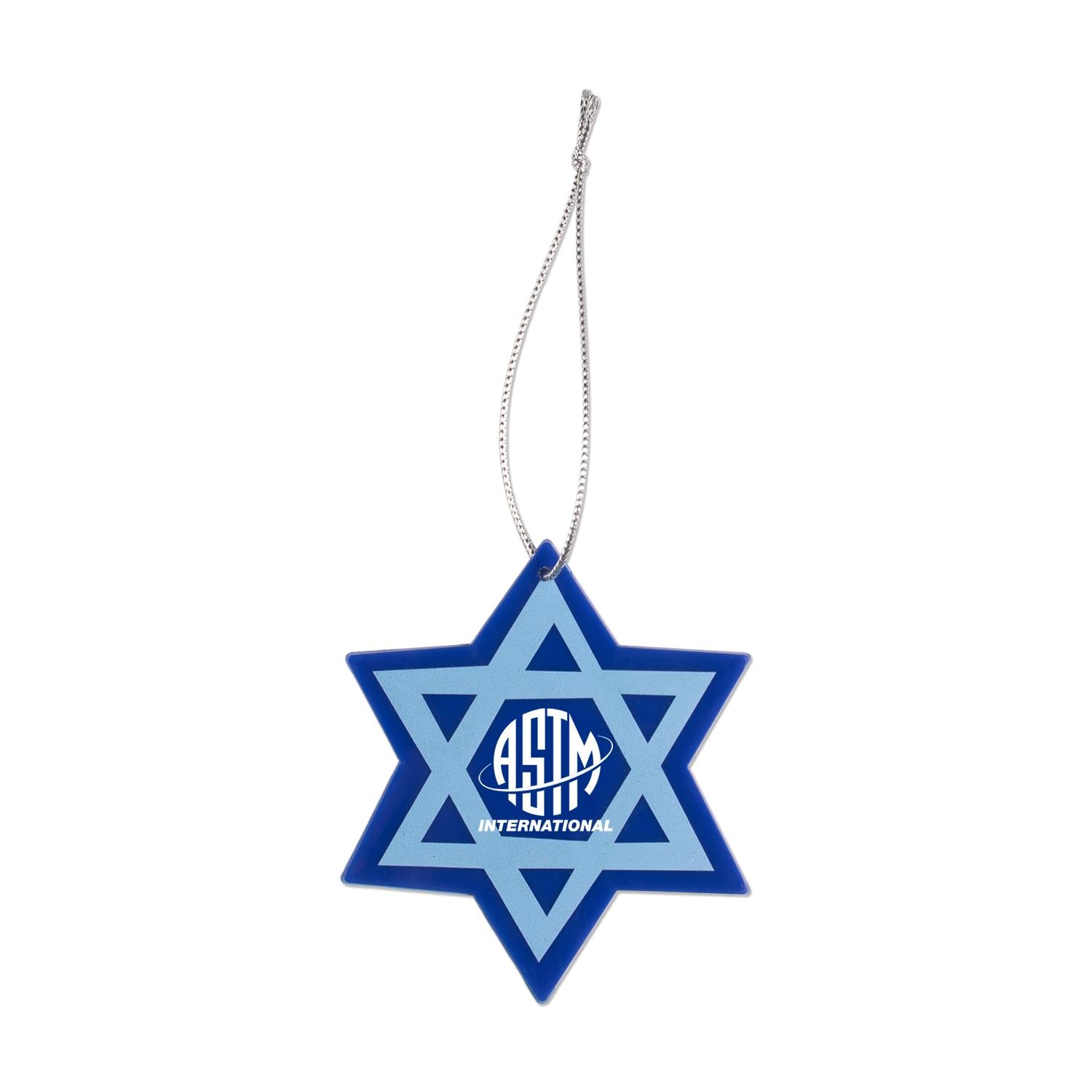 Meaningful symbols deserve beautiful design. Our Star of David ornament is a graceful, thoughtful piece that brings warmth and heritage to any space. Unlike flyers and pens that get tossed or forgotten this is a beautiful keepsake for your customer to use all year. This is a one of a kind promotional item. It will help support their business with inclusive branding. Whether placed on a festive tree, wall hook, or mantle, it’s a simple yet powerful expression of identity and tradition. Comes with stock art on one side.