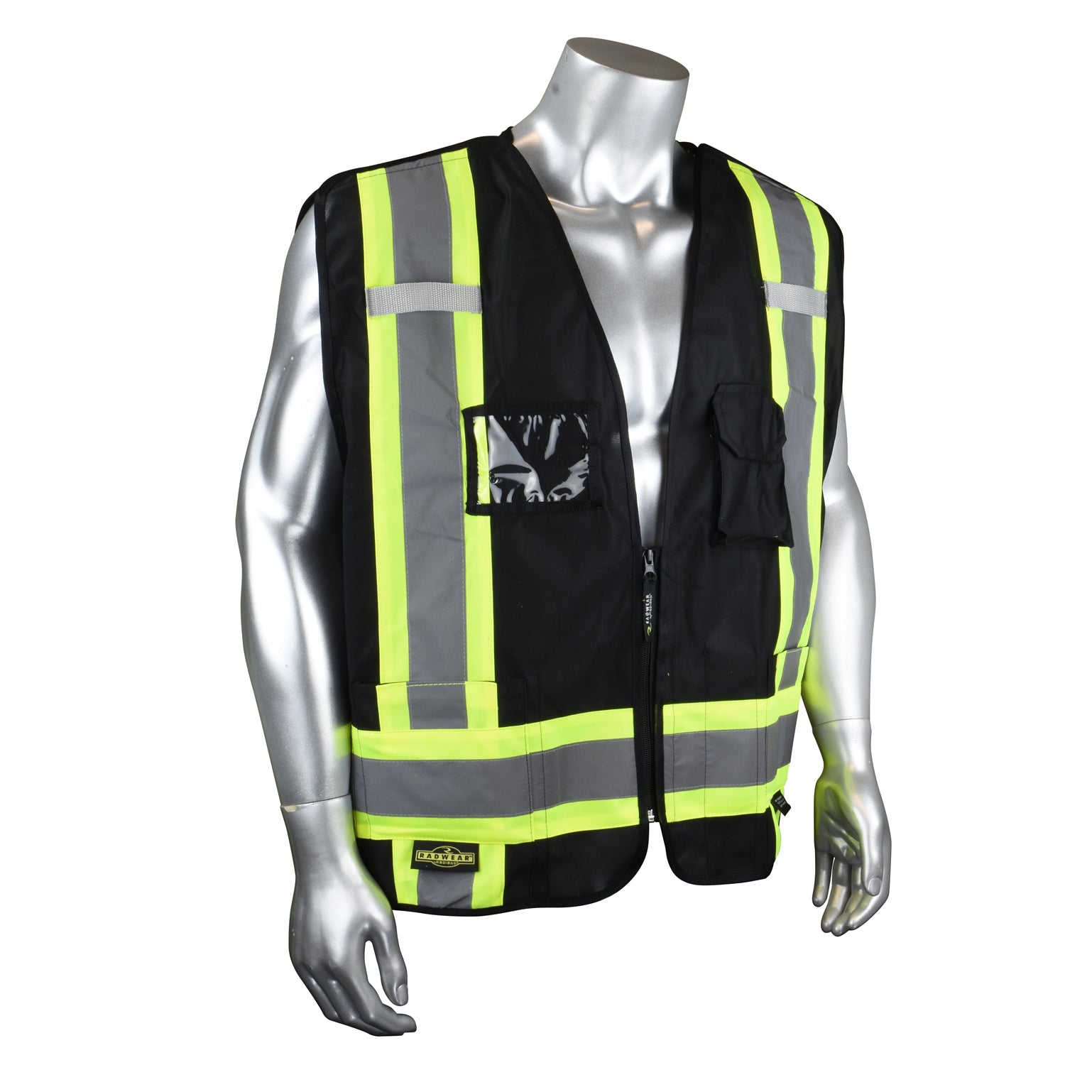 The Radians SV020X-1 Heavy Duty 7-Pocket Tear Away Cruiser Vest is made of 100% polyester and 2" silver reflective tape in an X-Back design. It has plenty of storage with 7 pockets including credential holder, radio pocket, and 3 interior pockets. This vest has a solid front with mesh back, and breakaway at shoulders and waist. CSA Z96-2015: CLASS 1 LEVEL 2, ANSI/ISEA 107-2015: TYPE O CLASS 1