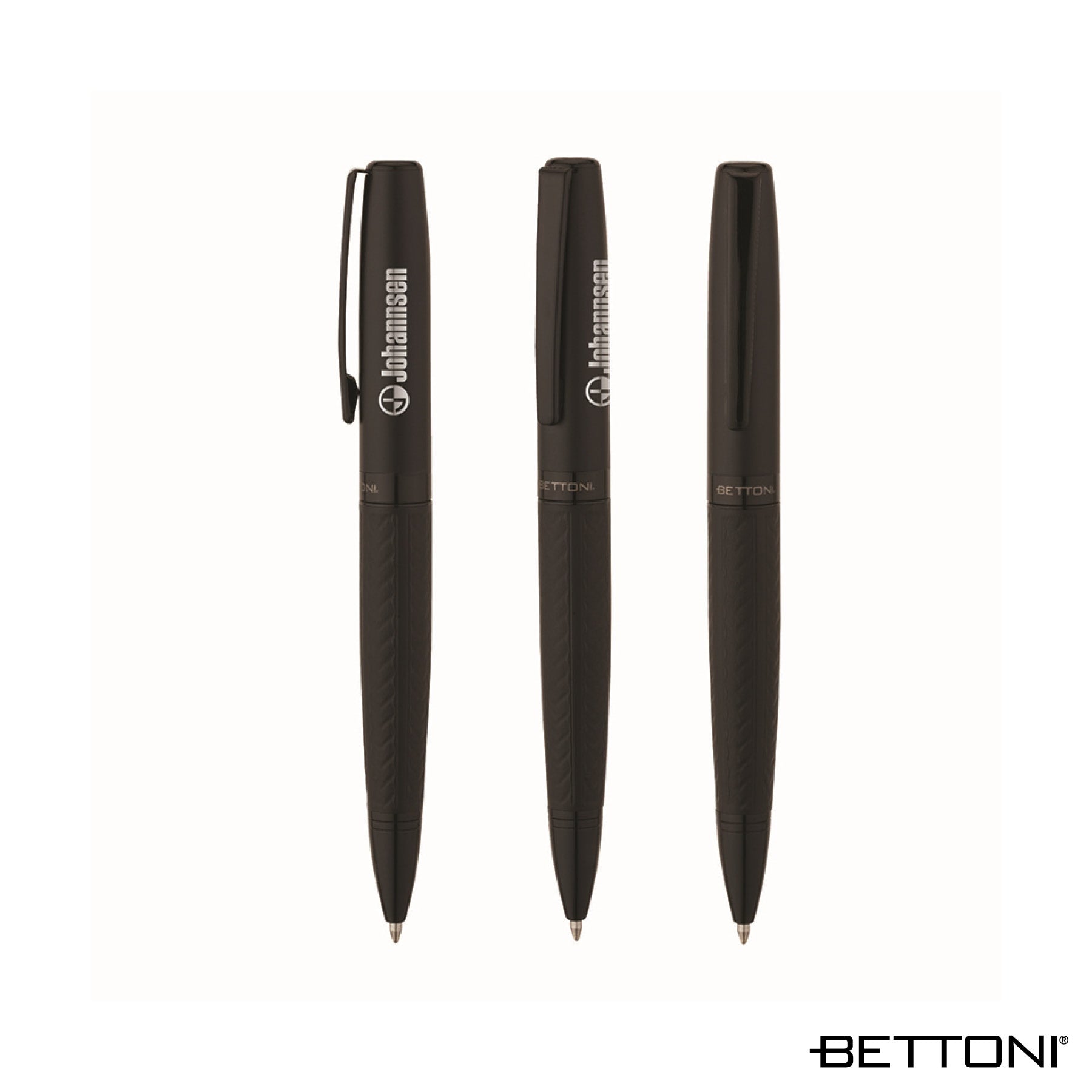 The Bettoni Tesoro steel ballpoint pen has a twist-action mechanism, matte black finish with gloss black trims, textu... See details