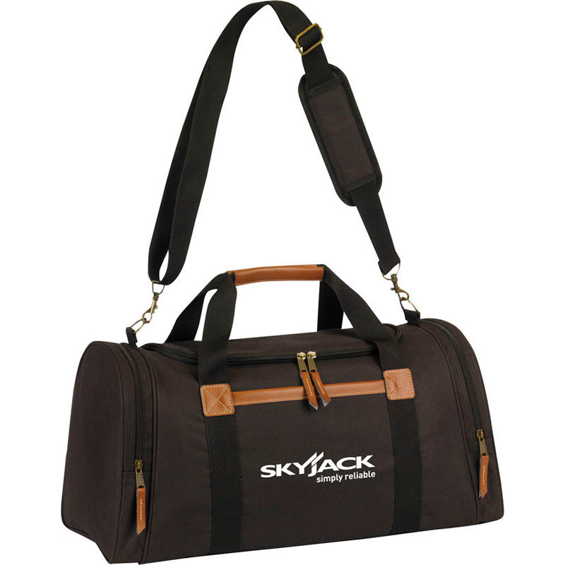It'll Carry A Bunch, So You Can Workout At Lunch! Large capacity; U zipper top; Large front zipper pocket; Large end zipper compartments; Side open pocket; Hard board bottom insert; Double carry handles; Adjustable and detachable shoulder strap w/rubber grip (36" to 56.6"). 600 Denier w/Leatherette Trim.