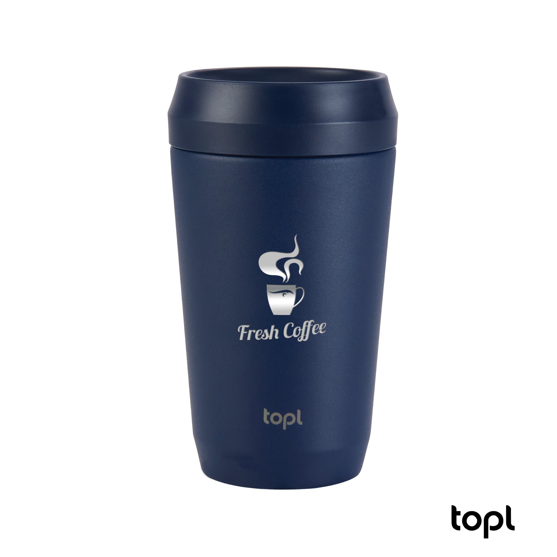 The 12 oz. TOPL® Travel Cup is designed for smooth sipping and daily convenience. The patented leakproof lid design crafted from recycled polypropylene features a 360° design for sipping from any angle and also serves as the fill opening—no need to unscrew the lid! A locking mechanism prevents spills while on the go, and the lid fully disassembles for easy cleaning. Double wall 18/8 food-grade stainless steel construction with vacuum insulation keeps drinks hot or cold for hours and the sweat-proof, powder-coated finish offers a secure, no-slip grip. A built-in reprogrammable NFC chip on the base provides instant access to product info and care instructions with a tap. BPA-free and FDA compliant, this cup fits most coffee machines & car cup holders and combines smart features with sustainable materials for life on the go.