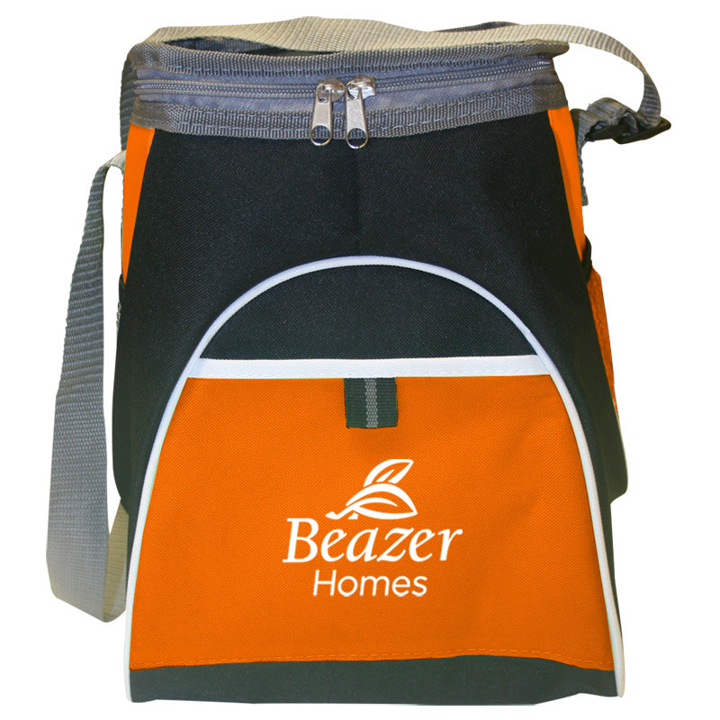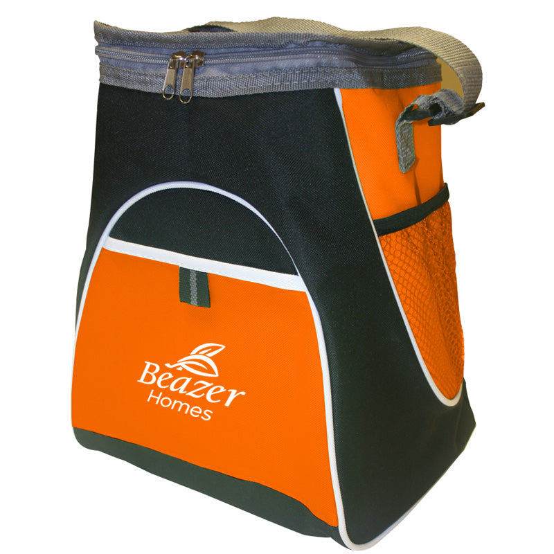 Tower High Above the Rest! Two side mesh pockets to hold bottle opener, keys, granola bar - anything you want quick access to. Black body with white piping and Gray accents creates the crisp look of this cooler. Contrasting color panels on side and front pocket. Wide, adjustable shoulder strap allows a perfect fit for everybody. 600D Poly with PEVA liner. The tall shape of this cooler accommodates large soda bottles and wine.