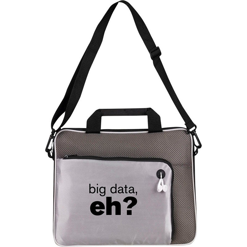 I'm more than a padded sleeve, so you can take your laptop when you leave! Padded main compartment; fits most 13" laptop; Front zipper pocket w/inside organizer and ear bud port; Adjustable detachable shoulder strap. Strap: up to 54"; 2 Handles: 11". 600 Denier Polyester, Metallic Doby