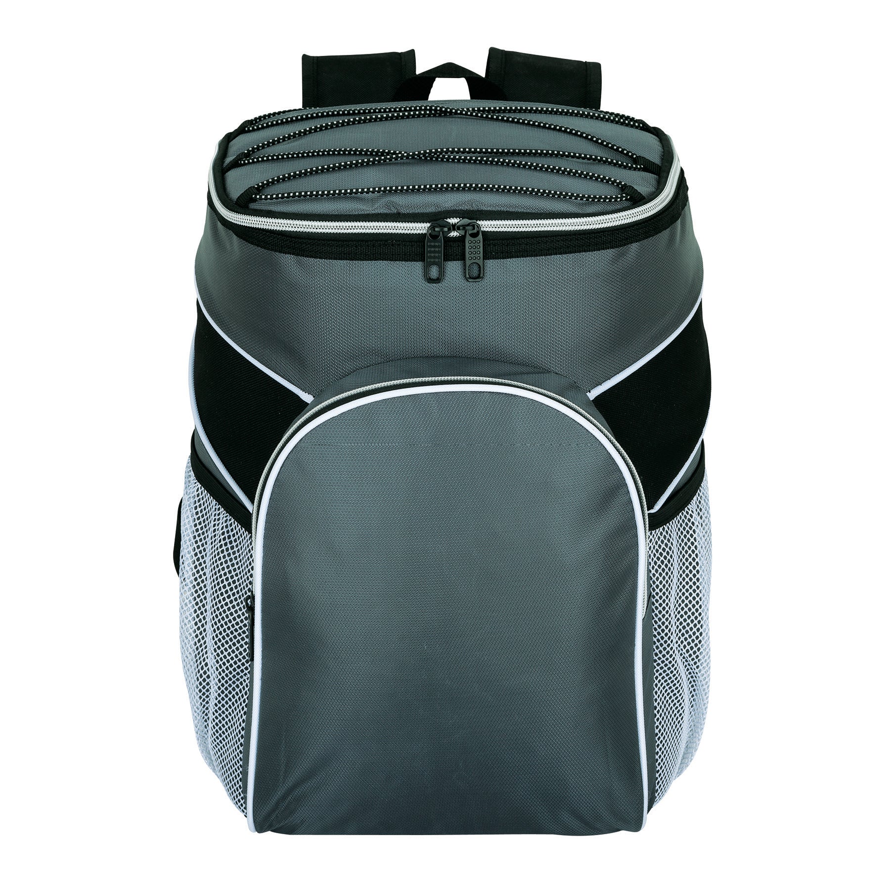 The Victorville backpack cooler is perfect for your next excursion or trip to the market. It has a 30-can capacity and is made of durable 600D polyester and 420D, has insulated PEVA lining and an elastic tie-down cord on the top compartment closure. Two mesh side pockets flank the outside of the bag, and a front zipper compartment provides plenty of room for items you don't need to keep cold. Comes with a carry handle and padded adjustable backpack straps.