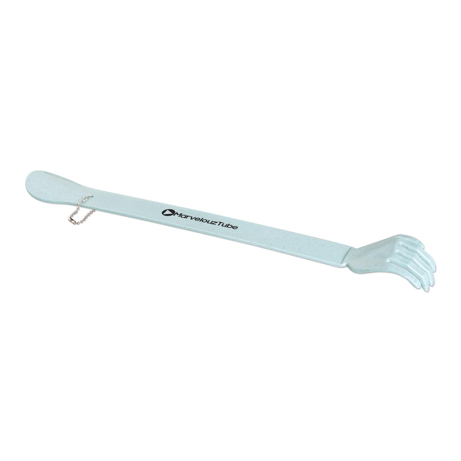 Our wheat fiber infused plastic backscratchers are a perfect promotion for chiropractor offices, medical offices, retirement homes, spas and more. Eco-friendly wheat fiber reduces plastic used in this item by 50%. Features a shoehorn on one end as well as a chain for hanging. One location imprint only.
