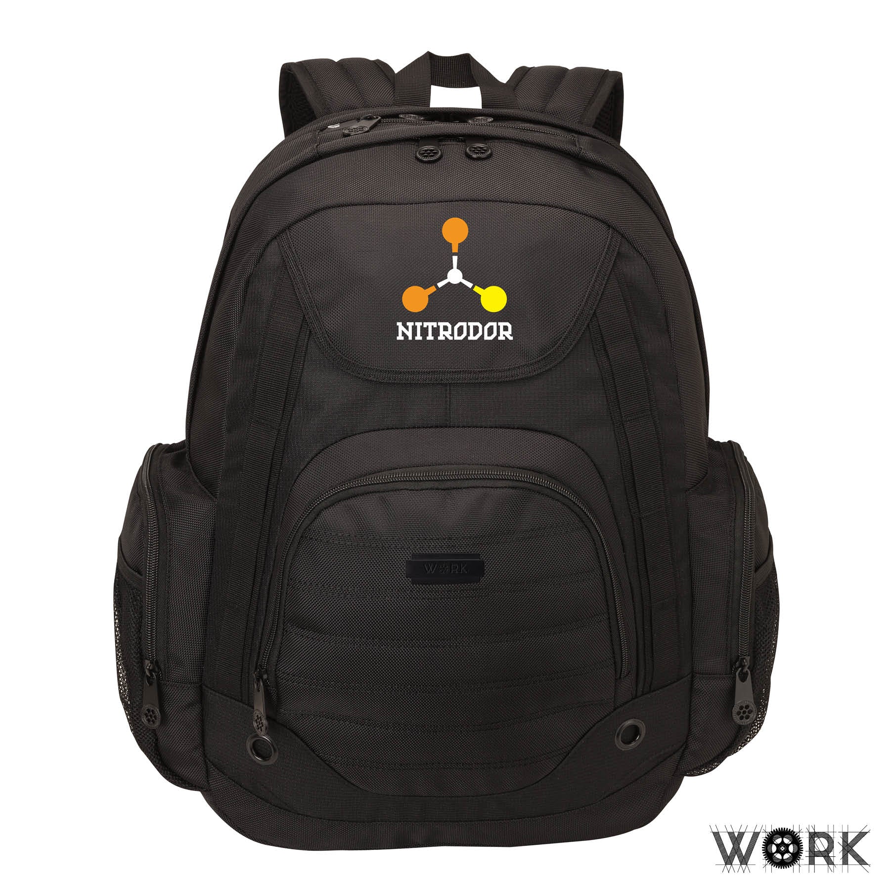 The fully-lined Work-Pro backpack is made with heavy-duty 1680D, rip stop and 210D lining. It features a TSA-friendly open-flat section with padded 15.6" laptop compartment with hook and loop security strap, tablet pocket with hook and loop security strap, slip pocket and a zippered pocket. There is a convenient easy-access top zippered pocket for your valuables and the large center compartment has an organizer and zippered pocket. The zippered front compartment has multiple pockets and is a great place to store your accessories. It also includes two zippered side pockets and two mesh side pockets as well as a carry handle, padded air mesh back and adjustable backpack straps, a chest strap and trolley handle pass-through strap. A portion of all proceeds is donated to Shelter to Soldier™, a non-profit organization that rescues dogs to train as service animals for veterans in need.