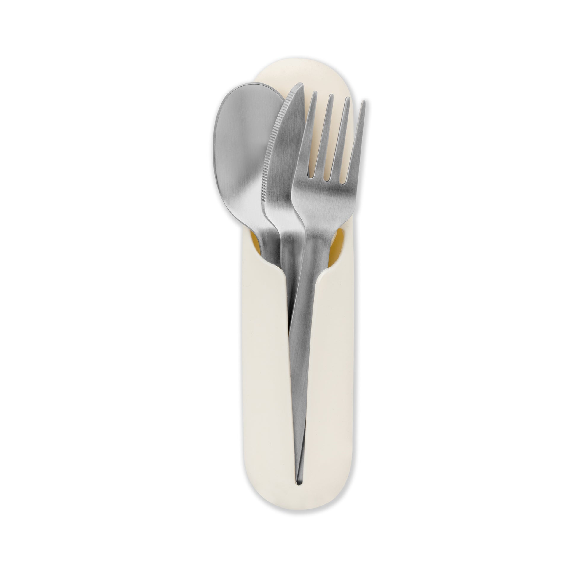 Put a fork in single-use plastic waste. This compact set of stainless steel silverware keeps a slim profile, while the silicone carrying case helps things stay clean in transit. Reduce your eco-impact with Porter. Dishwasher safe. Cal Prop 65 Compliant. FDA/LFGB approved. BPA free.
